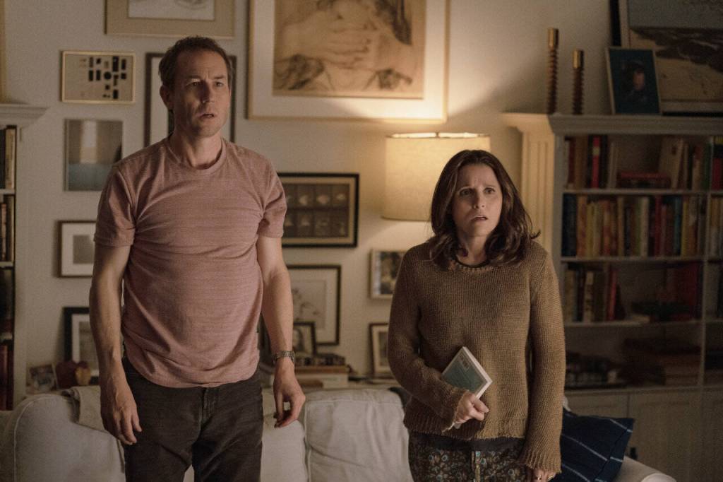 Tobias Menzies and Julia Louis-Dreyfus play a couple shaken by the revelation that he lied to her about liking her new book in “You Hurt My Feelings,” which will play at the Everett Film Festival on April 6. (A24 Films)