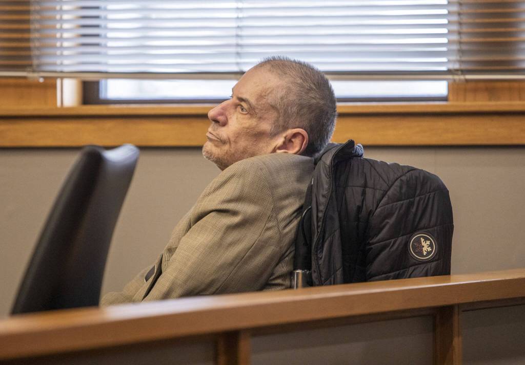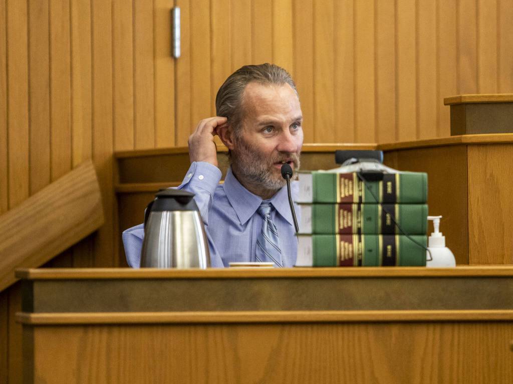 Alan Dean listens to T.J. Peters testify at the Snohomish County Courthouse on Tuesday, March 26, 2024 in Everett, Washington. (Olivia Vanni / The Herald)