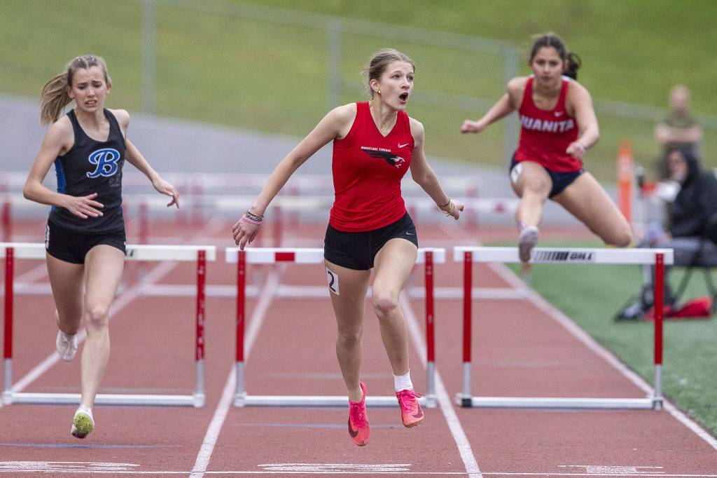 Stanwood senior Grace Crain captured first in the girls javelin with a toss of 125-9; Marysville Pilchuck junior Maya Velasquez tied for first in the girls high jump, recording a mark of 5-2; Meadowdale’s 400 relay group of Matthew Patterson, KeyShawn Shepard, Brian Mills and Sebastian Summers placed second with a time of 3:29.73; Marysville Pilchuck senior Gianna Frank finished second in the girls shot put with a throw of 38-3 1/4; Kamiak senior Vivian Mawudeku placed second in the girls long jump with a mark of 17-7; Snohomish senior Kelsey Nichols claimed third in the girls triple jump with a mark of 35-10; Stanwood sophomore Ryan Khoury placed fourth in the boys 800, finishing in 1:57.81; Mountlake Terrace sophomore Brynlee Dubiel took fourth in the girls 300 hurdles with a time of 46.85.