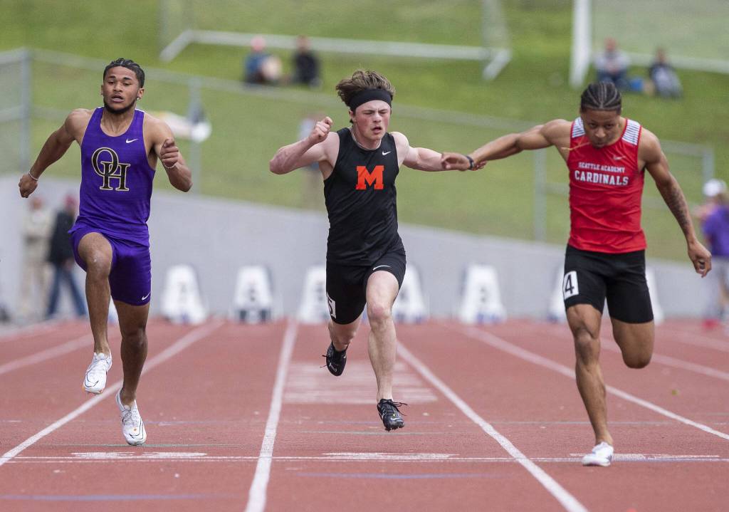 Ganje sprinted the 100 in 10.63 seconds, setting a new personal-best mark as well as claiming the top recorded time in the state this season for Class 4A. Ganje took second in the race, finishing 0.05 seconds faster than third-place finisher Mason Davis of Monroe. Seattle Academy’s Reggie Witherspoon III took the first-place medal n 10.38, also placing first in the 200 (21.73).