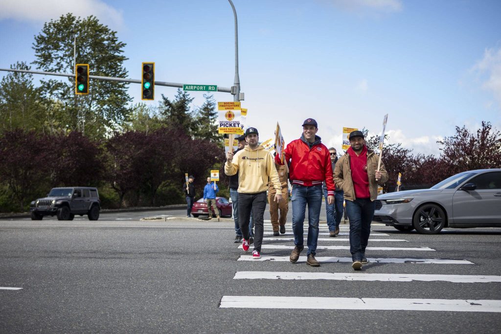 Boeing firefighters picket in Everett for better pay