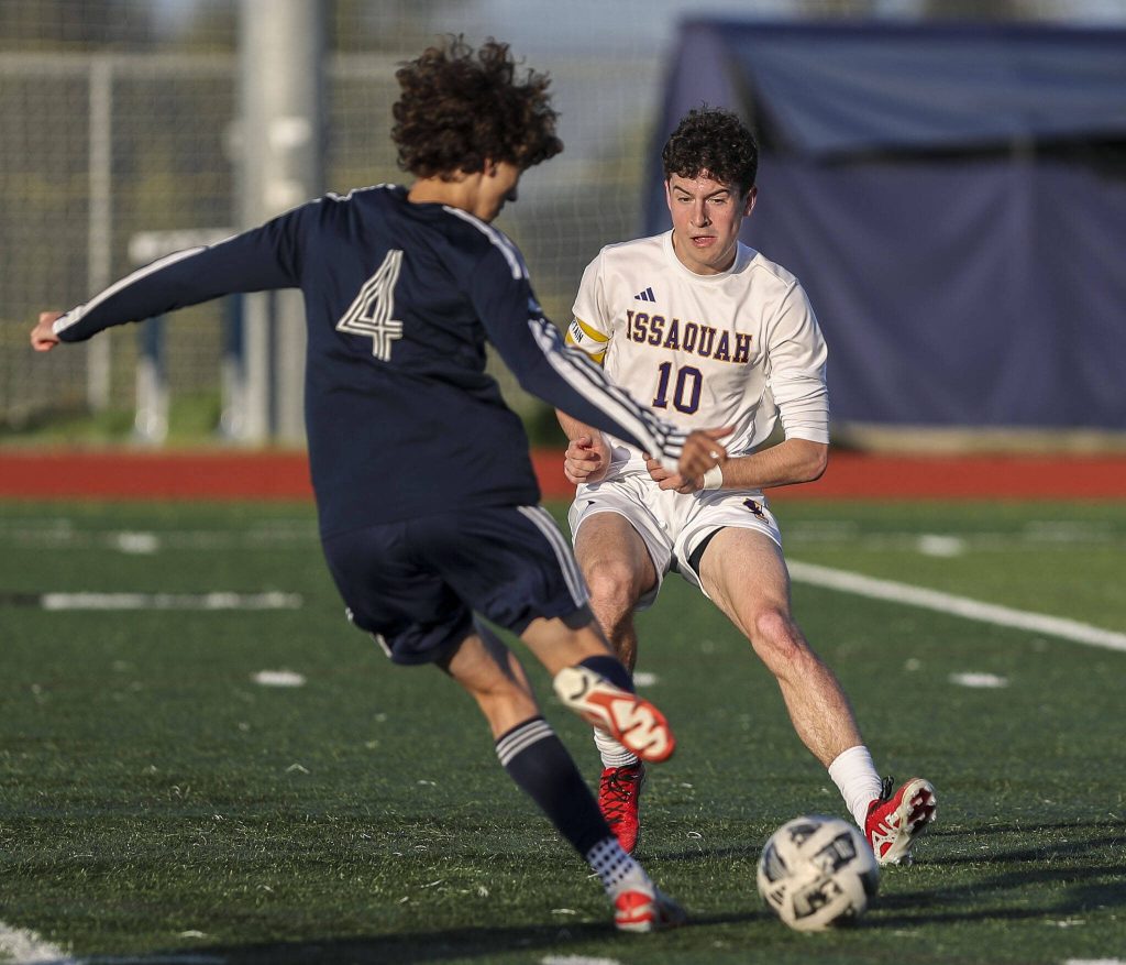 After Issaquah forward Oliver Dorr broke loose for a score in the 7th minute, Glacier Peak’s Nicholas Miller wheeled in a shot in the 14th as the Grizzlies (11-3-2) held a 1-1 tie going into intermission. However, the Grizzlies 6-foot-5 junior goalkeeper Aiden Larson came up hobbling after a save midway through the first 40 minutes, finishing out the half before being unable to return due to a calf injury.