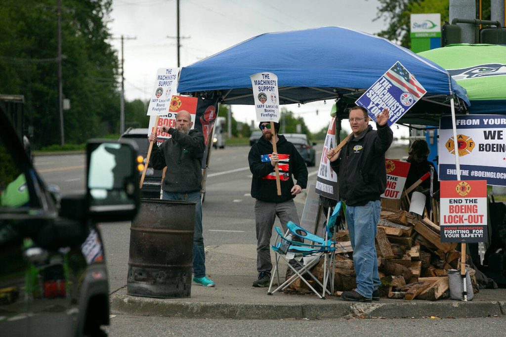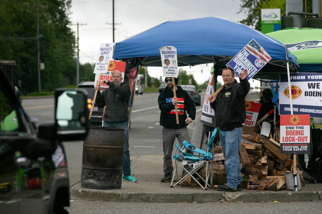 Since then, firefighters and their supporters have held round-the-clock information pickets near Boeing facilities, including the company’s wide body assembly plant at Paine Field. About 40 firefighters work at the Everett plant.