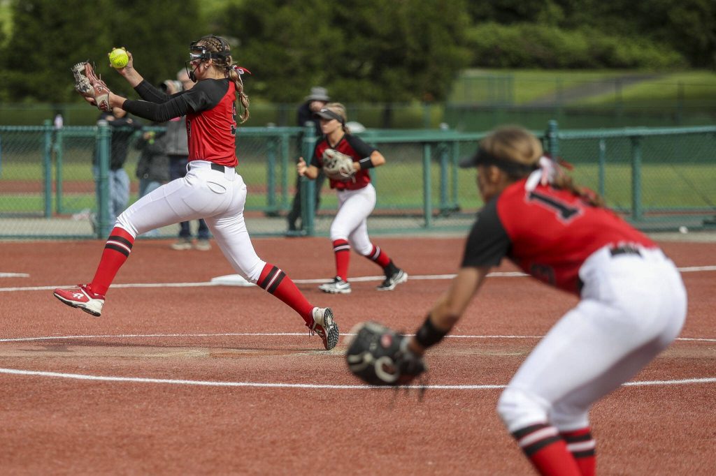 “Our girls like faster pitching,” Snohomish coach Patti Lande said. “That’s kind of more of their jam. … My hat’s off to (Daher) because that was her third game pitching. She was exhausted. … But I just know … they’re more used to (faster pitches), so I think that was why it took a minute to get their bearings.”