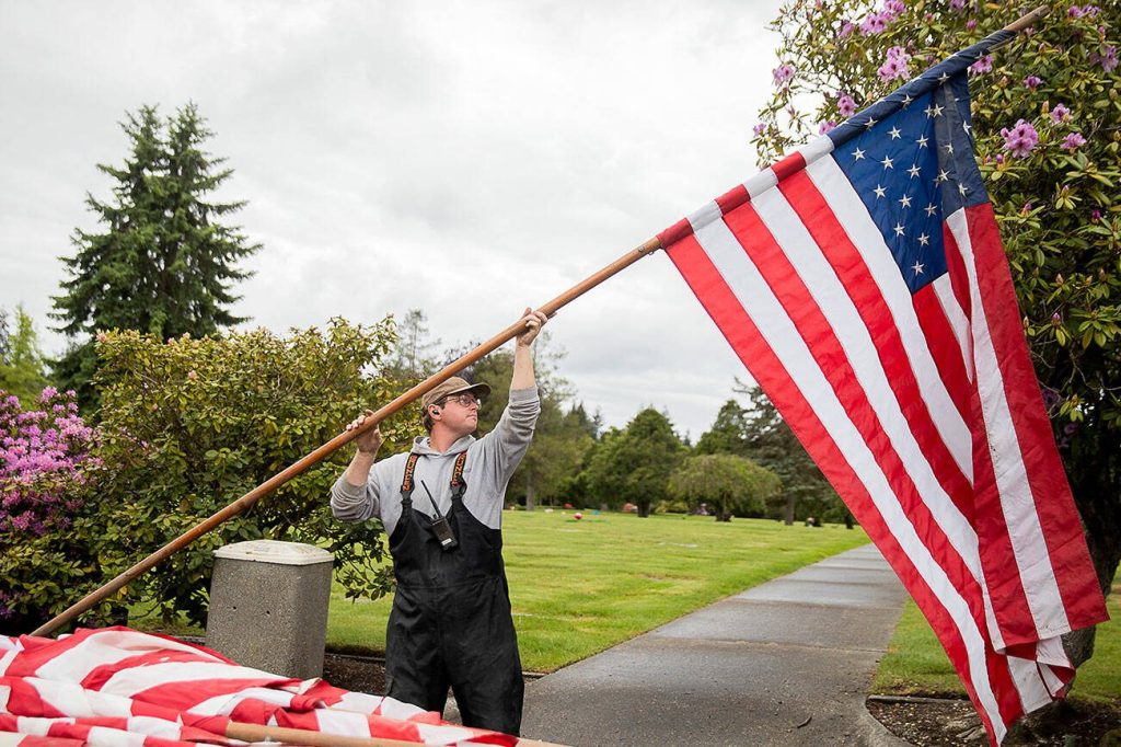 Volunteers place thousands of flags by veterans’ graves in Lynnwood