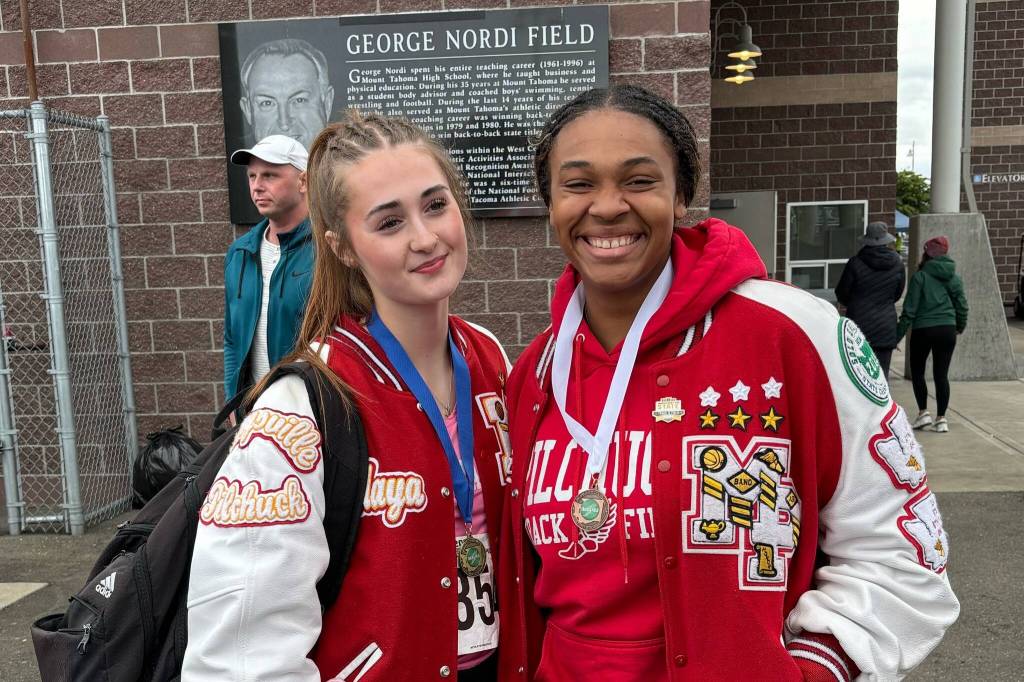 Velasquez cleared 5 feet, 4 inches to secure a first-place medal in the girls high jump on May 24 at Mount Tahoma High School. The jump also marked her personal best.