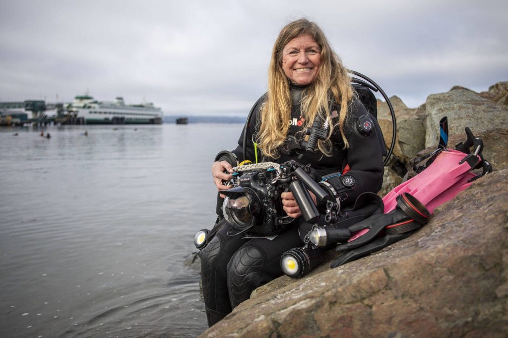 On a sunny but cold day in February, she zipped into a dry suit at the Edmonds Underwater Park to supervise two of her scuba diving students.