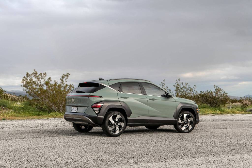 Kona’s two engines are carried over from the previous model. SE and SEL trims have a 147-horsepower 2.0-liter four-cylinder; N Line and Limited get a 190-horsepower 1.6-liter turbo-four. The former comes with a continuously variable automatic transmission (CVT), the latter with an eight-speed automatic. On every model, front-wheel drive is standard and all-wheel drive is available.