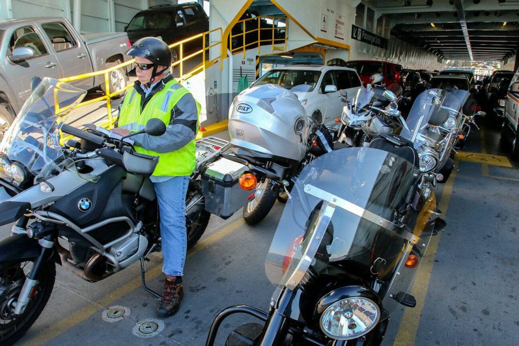 Motorcycles and bicycles follow different rules than cars for boarding ferries. On most sailings, they bypass the ferry wait lines for cars and get priority loading and unloading.