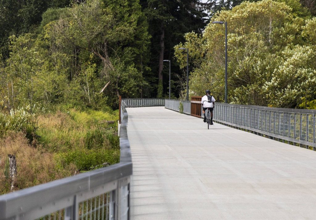 The project was a partnership between the city of Lynnwood and Sound Transit, with the agency committing $5 million. Officials used the money to rebuild a path between the Interurban Trail and the transit center and extend it to nearby neighborhoods.