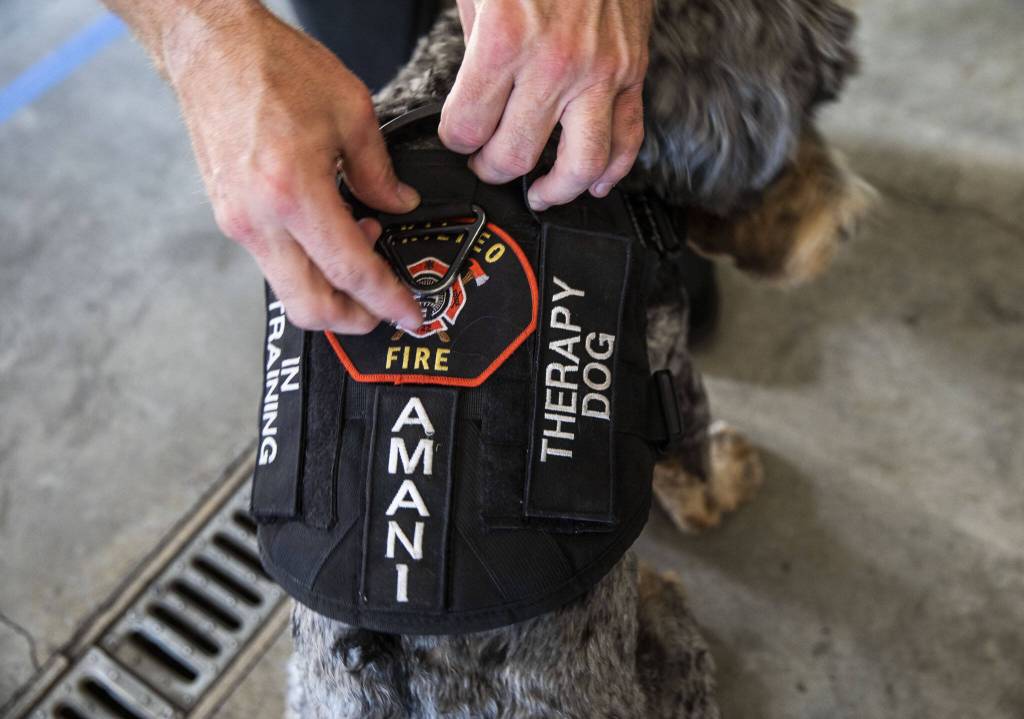 Landis adopted Amani last summer, and is in charge of training him to develop the discipline of a licensed therapy dog. He said Amani will eventually assist in fire safety education and community outreach.
