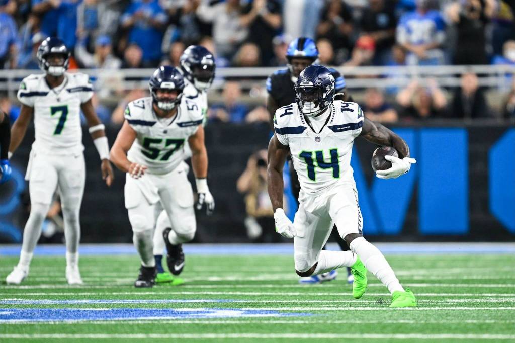 The second of Kenneth Walker’s three touchdown runs got the Seahawks within eight points of the Lions with 3 minutes left in the third quarter. On the two-point play, Smith threw a pass into the left sideline of the end zone just inside the goal-line to DK Metcalf. The wide receiver made a remarkably athletic play to lean away from Detroit cornerback Carlton Davis into the sideline and catch the pass.