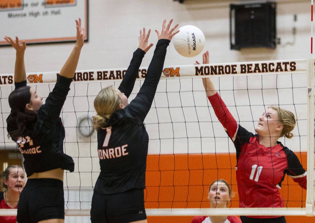 “We crunched a lot of film on Snohomish,” said Monroe coach Michael Jordan, whose team lost 3-0 to the Panthers in September. “Our strategy was to spread their defensive wings out and target one through five because they collapsed the court very well. They play an aggressive defense. … So we were just trying to get them to have to make the tough pass.