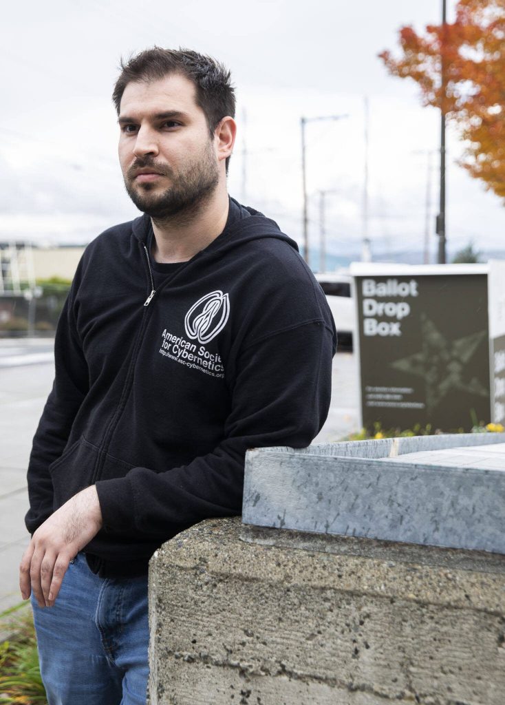 Mike Berryhill, a volunteer with Initiative 24-01, at the Snohomish County Campus on Tuesday, Oct. 29, 2024 in Everett , Washington. (Olivia Vanni / The Herald)