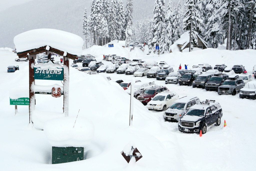 The Stevens Pass website reminds people that parking on the shoulder of U.S. 2 is illegal, and cars will be ticketed and towed.