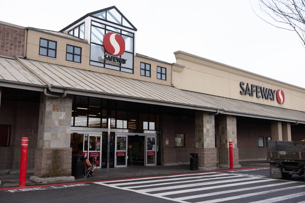 The Safeway at 4128 Rucker Ave. in Everett on Wednesday. This location was set to be one of the 19 in Snohomish County sold to C&S Wholesale if the merger between Kroger and Albertsons went through. (Will Geschke / The Herald)