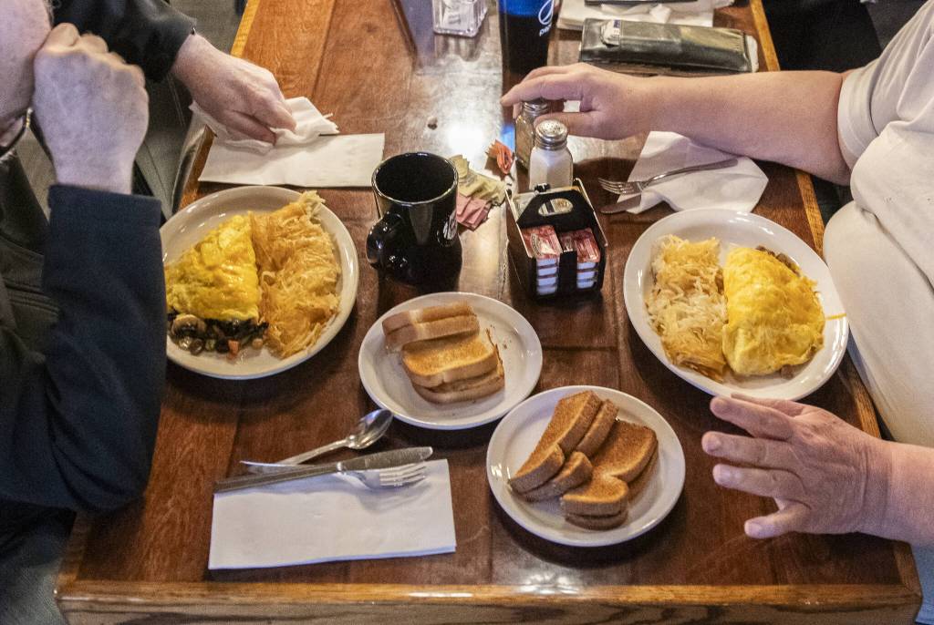 When the Buzz Inn server brought their food, the guys didn’t dig in. They clasped hands and said grace together.