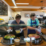 Teresa Godfrey and Sandra Reichstetter, married 22 years, work at their new restaurant, Cup & Crepe on Everett Mall Way in Everett. (Ryan Berry / The Herald).