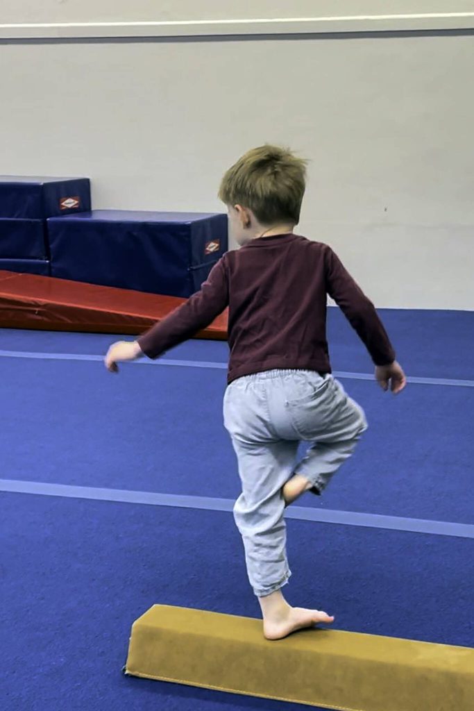 Julian Rudd, 4, balances recently at the Frances E. Anderson Center. The city’s gymnastics program was among the slew of budget cuts made last month. (Provided photo)