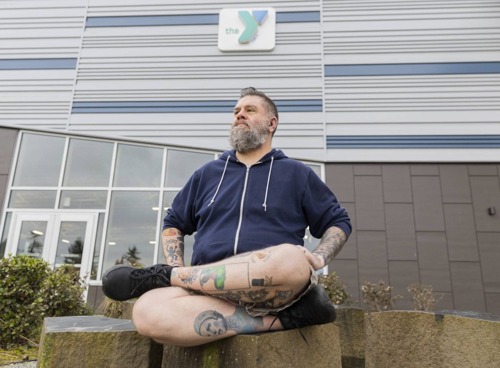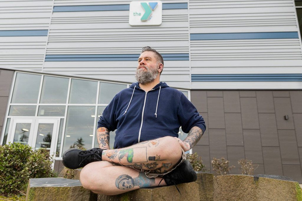 Christopher Bragg outside of the Everett YMCA on Thursday, Feb. 20, 2025 in Everett, Washington. (Olivia Vanni / The Herald)