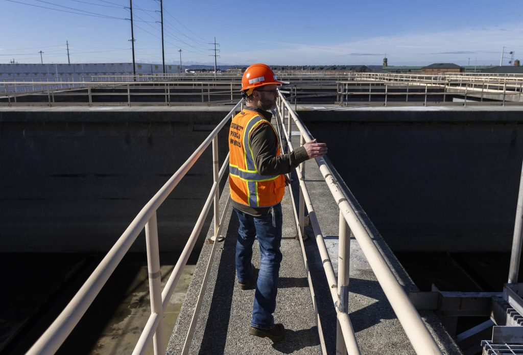 “What this is essentially, for layman’s terms, is a bubble in the pipe,” Public Works Principal Engineer Zach Brown said during a facility tour on Thursday. “Instead of having overflows out to Puget Sound when we get big weather events and exceed the capacity in our combined sewer system, it’ll overflow to here.”