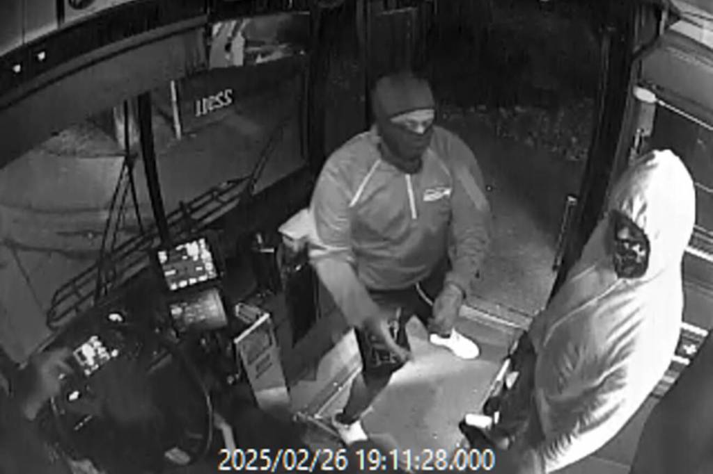 Shortly after 7 p.m. Feb. 26, two suspects wearing ski masks boarded a bus at Alder Avenue and Grove Street in Marysville, struck the driver with an umbrella, and held him at knifepoint while demanding money, according to the sheriff’s office.