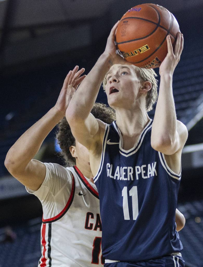 Glacier Peak boys basketball led by two in the dying seconds of overtime against Camas in the WIAA Boys 4A State quarterfinals at the Tacoma Dome on Thursday. Glacier Peak senior Jo Lee missed his second free throw with 15 seconds left, and the ball got to Camas’ 6-foot-8 junior Ethan Harris under the basket.