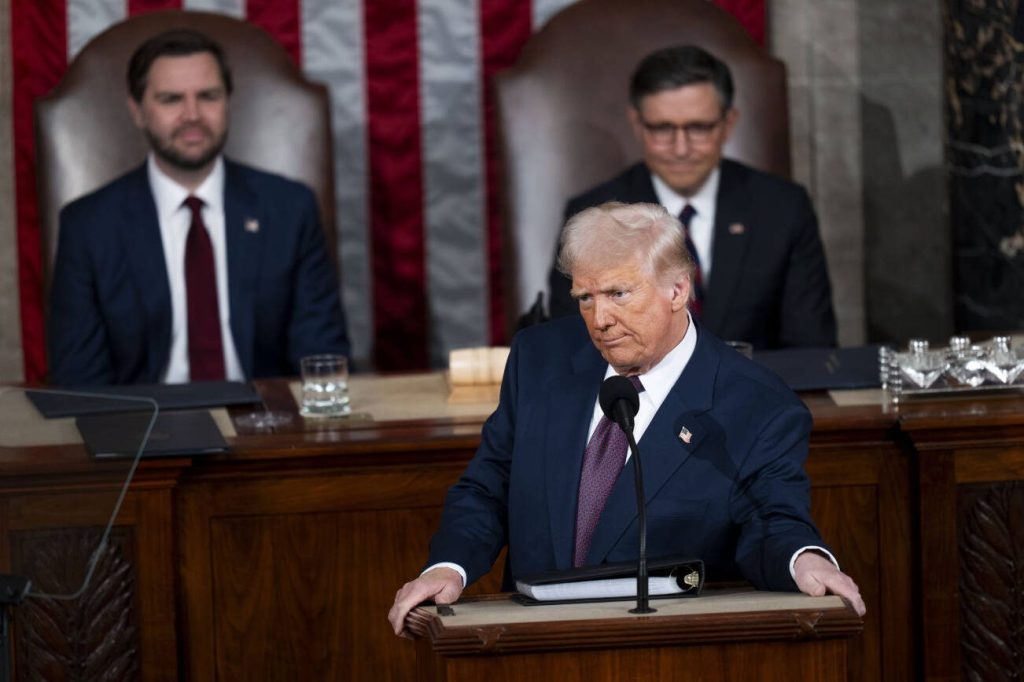 In that speech, the first before lawmakers of Trump’s second term, the president declared vast accomplishments during the brief six weeks of his presidency. He claimed to have “brought back free speech” to the country. He declared that there were only two sexes, “male and female.” He reminded the audience that he had unilaterally renamed an international body of water as well as the country’s tallest mountain.