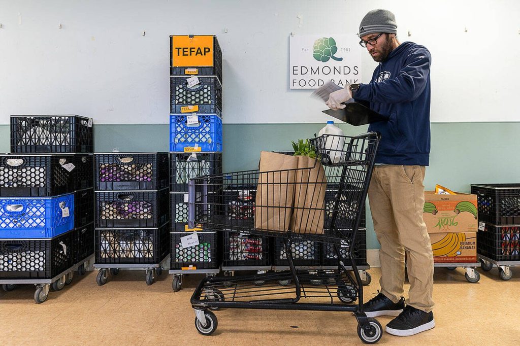 The Edmonds Food Bank relies on state and federal support for about 20% of its foods, wrote Edmonds Food Bank executive director Casey Davis in an email Monday. But it’s hard to tell what the specific impacts will be, she said. Davis is also president of the Snohomish County Food Coalition.