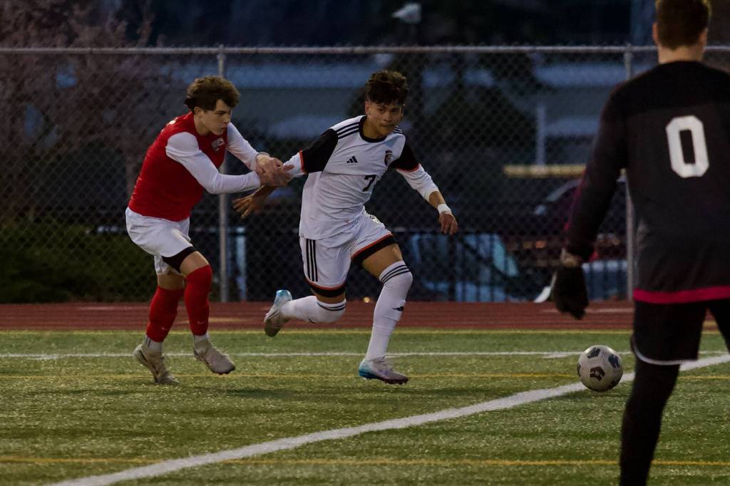 The game remained scoreless for the first 20 minutes, but not for a lack of effort. Just two minutes in, Monroe junior forward Julian Perez dribbled through a swarm of Snohomish defenders and put a shot towards the net, but it bounced off the post.
