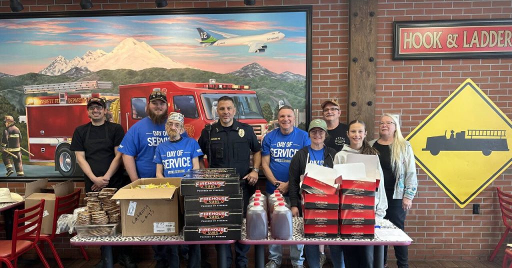 The program they conducted is called “Heroes Serving Heroes” in which they delivered Firehouse subs to two police stations, three fire stations and the Snohomish County 911 Call Center in Everett.