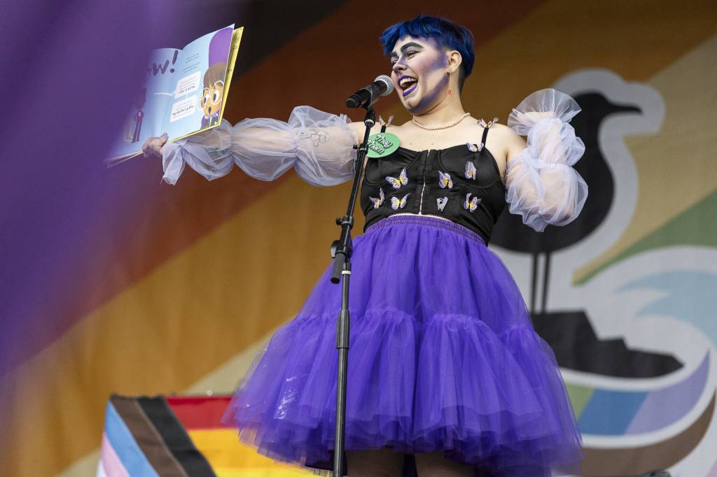 Early in the day, drag performer Kenbie Enby read “My Shadow is Purple” by Scott Stuart, a children’s book about a child navigating their gender identity.