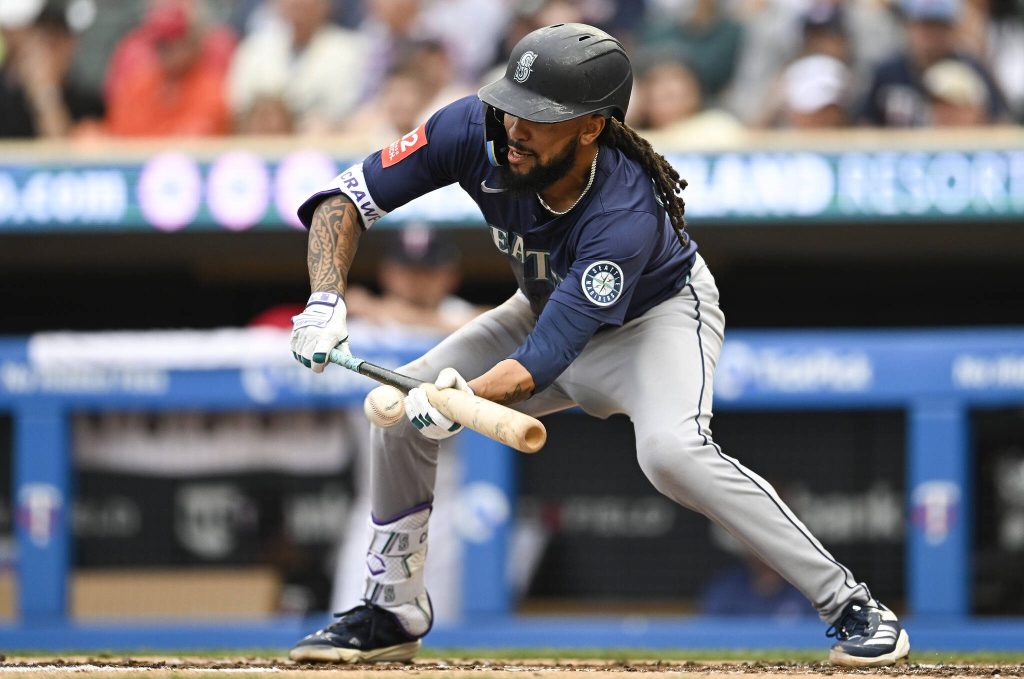 Trevor Larnach ignited the Twins’ comeback bid with a ground ball up the middle to begin the fourth inning. Trailing by four runs, Larnach raced to second base for a hustle double. He was just rounding first when Mariners right fielder Dominic Canzone fielded the ball, but Canzone’s throw skipped past Crawford when Larnach dove into the bag with a headfirst slide.