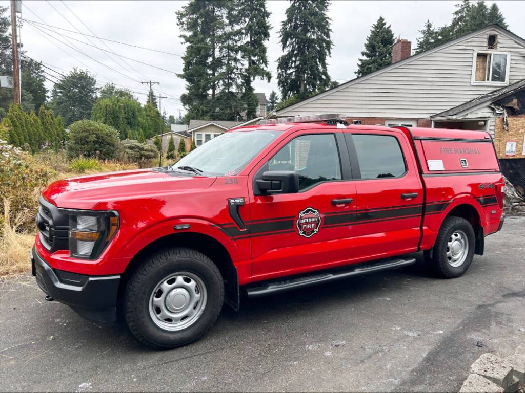 This Ford F-150 from South County Fire was stolen and recovered Friday, July 25, 2025, in Edmonds, Washington, with only minor damage. (South County Fire)