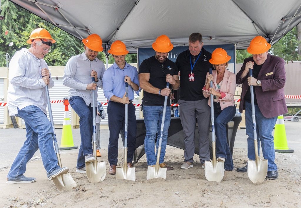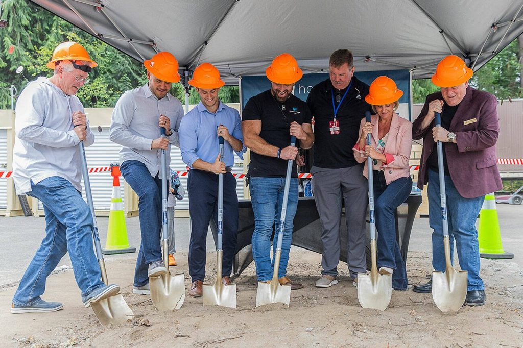 Community members and Hope Creek staff break ground for the new Mill Creek Community Food Bank site on Monday, Aug. 4, 2025 in Mill Creek, Washington. (Olivia Vanni / The Herald)