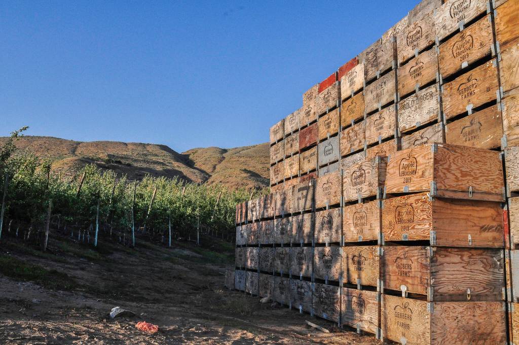 Appling is a year-round affair. As we rolled by in mid-afternoon, the sun at full tilt, I wondered where the apple tenders were. Turns out, most of the work they do in the spring and summer takes place in the morning before it swelters. In June, an apple is about the size of ping pong ball and measures a little over an inch tall. By August or September, it’s plump and ready to harvest. In winter, it’s time to prune.