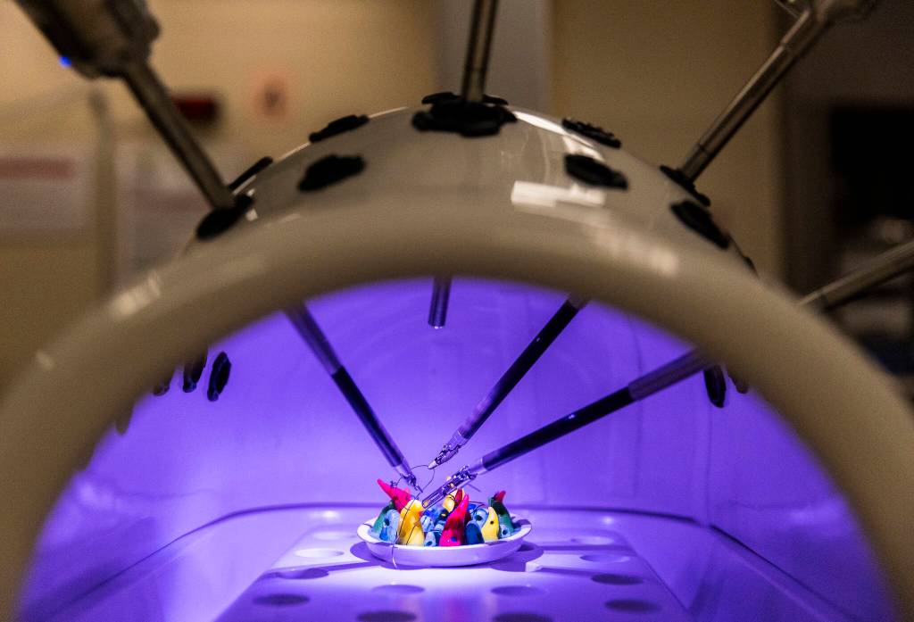 Now, Fong uses a robotic platform — named Da Vinci Xi — to perform prostatectomies. The machine, with its four protruding spider-like arms, can perform complex surgical work with only minor incisions. While operating, surgeons sit at a control seat that resembles an arcade game or a flight simulator, located far away from the actual patient. Surgeons look through a screen while using their hands and feet to control the robotic arms, which perform the surgery. The screen even has 3D vision, so surgeons operating can have depth perception.