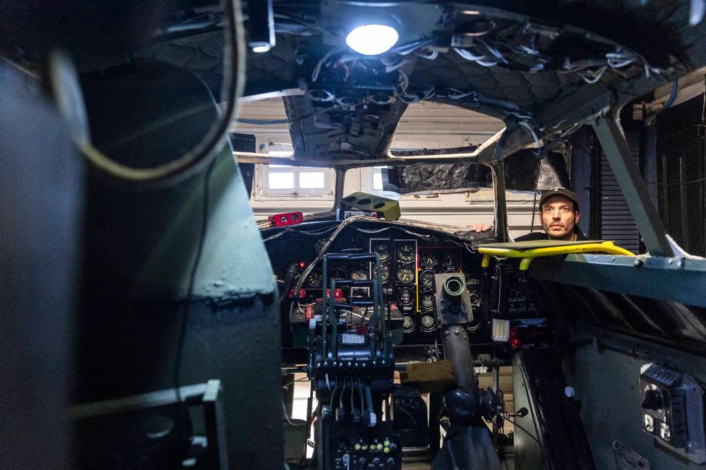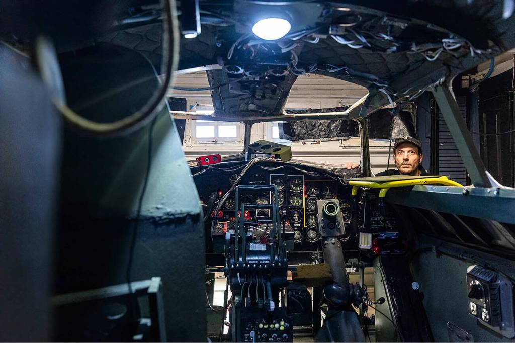 Since he started the project three years ago, he’s picked up building materials from local hardware stores and spent hours in the cramped space building the cockpit. His obsessive research sent him sourcing real B-17 plans from anonymous sources online and watching archival footage to get clues as to how workers assembled the planes in the 1940s.