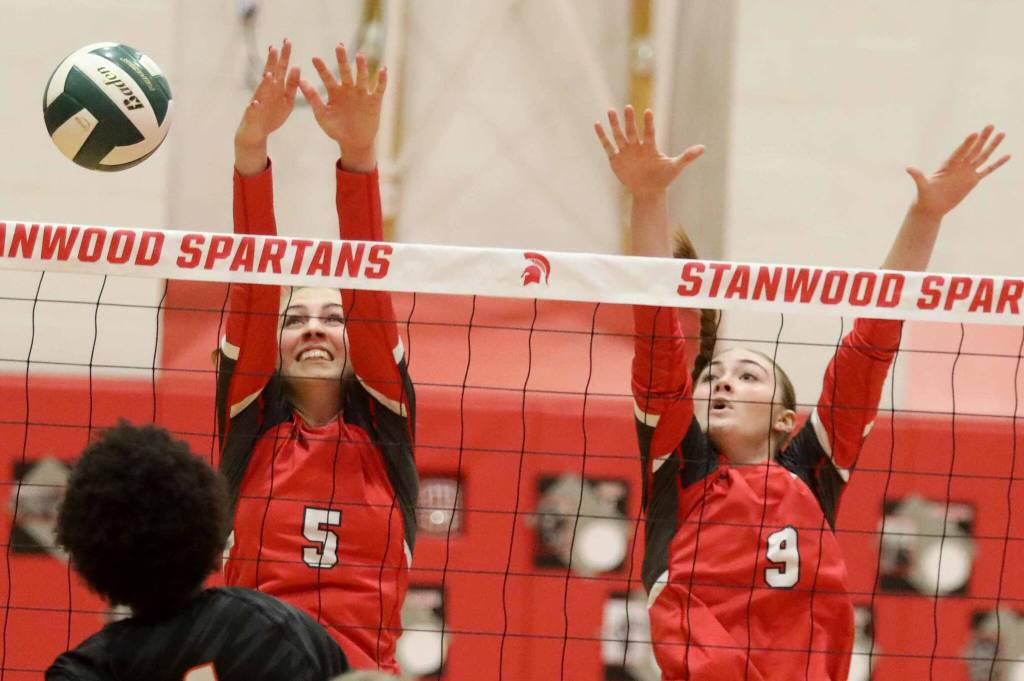 STANWOOD — The Spartans (8-1 overall, 6-0 league) outlasted the Bearcats (9-1, 5-1) in five sets (25-14, 20-25, 25-19, 21-25, 15-12) to maintain first place in the league. Whitney Longspaugh (28 kills) and Addison Bowie (43 assists, eight digs) led the offensive effort while Harper Neyens (10 kills, 14 digs) was one of two players to record double-digit kills and digs in the game. The other was Monroe’s Shannara Peebles, who had another standout performance for Monroe with 23 kills and 13 digs. Maddie Walker led the game with 24 digs, while Avery Ray had 21 assists in the loss.