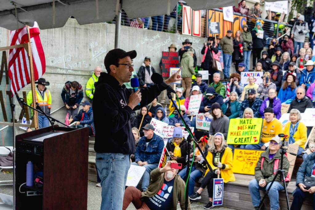 Ferguson at No Kings rally in Everett: State won’t ‘bend knee’ to Trump.
