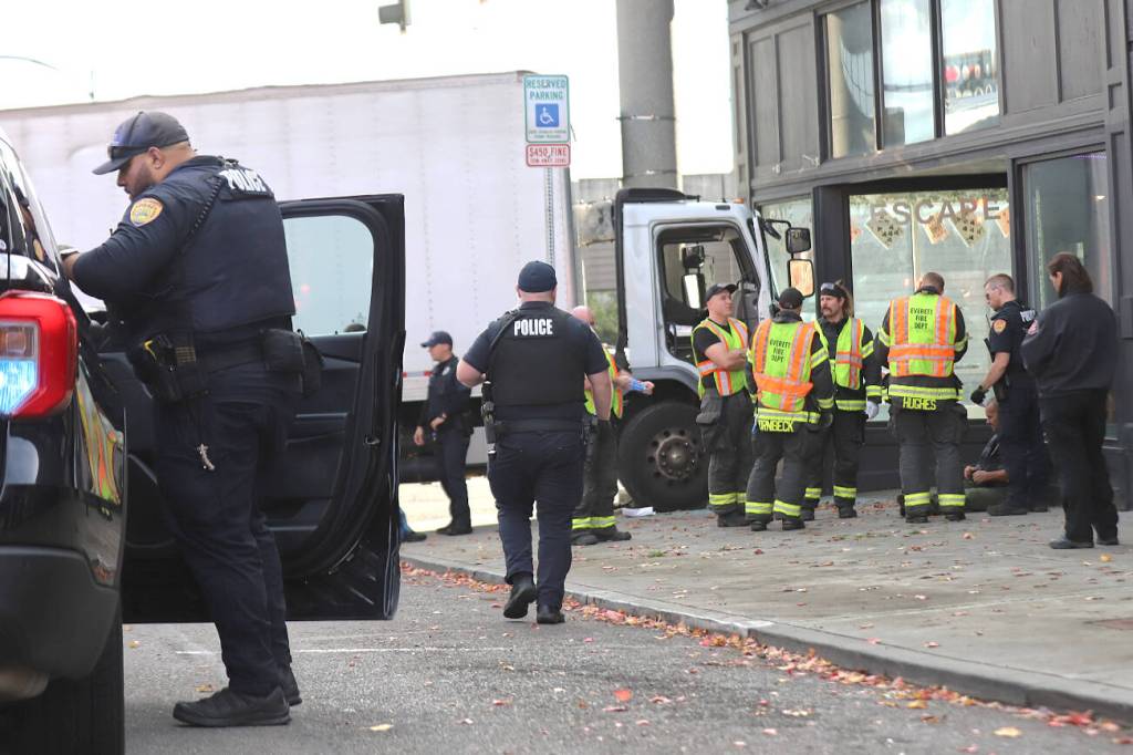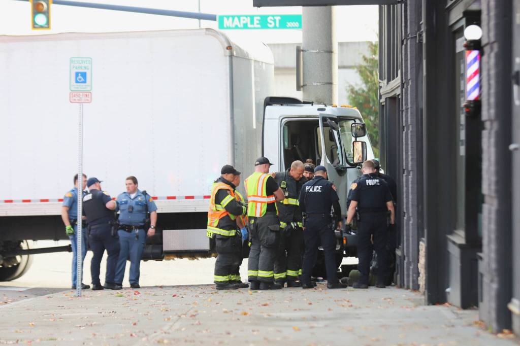 Around 10:09 a.m. Wednesday, officers responded to reports of a white box truck driving over the curb and onto the sidewalk before colliding with a pole on the 2900 block of Hewitt Avenue in Everett. Police initially blocked the eastbound lanes of Hewitt Avenue near Maple Street.