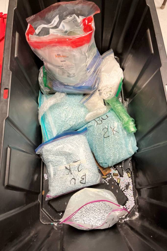 Law enforcement was granted search warrants for 12 locations, including a largely undeveloped “stash property” in Centralia linked to Jose Isabel Sandoval Zuniga, 30. Inside, investigators found 25 kilos of suspected fentanyl powder, more than 90,000 fentanyl pills and two dozen firearms, the release said.