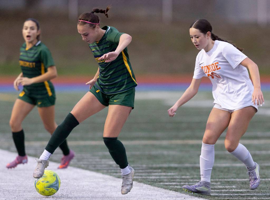 “We’ve worked really hard on working on making teams play chase,” Dalziel said. “We want the ball, we want to be able to possess it and keep it, and that was working, but then we weren’t going forward as much with it. … Credit to Monroe, they switched some people around, and we didn’t track it well enough. They played a dangerous ball over the top and off they go. Those mistakes in a girls’ game of soccer are very detrimental if you’re not on your toes and paying attention.”