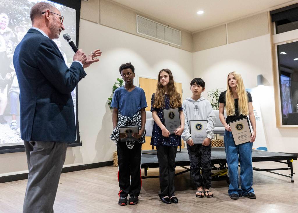 EDMONDS — Edmonds Mayor Mike Rosen and community leaders presented four former Hazelwood Elementary fourth and fifth-grade students with the President’s Environmental Youth Award on Thursday night, an award given out by the U.S. Environmental Protection Agency for K-12 youth environmental stewardship projects.