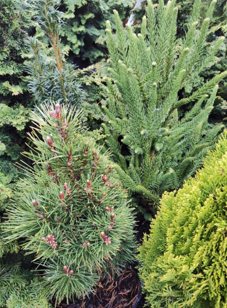 You should absolutely look and pay attention to the growth habit options. Tall and stately? Upright broad? Weeping? Globe shaped? Low and spreading? All of these types are useful in landscapes, but assess your location first. You will find properly labeled conifers with one of these terms, which should help you envision what it will look like in the future. Heights, spreads and growth rates are all part of this equation, so ponder the options. As an example take the multitude of cultivars of Hinoki Cypresses, wonderful PNW conifers for us to utilize. I have some in my yard that are only 2-feet tall by 3-feet wide after 20 years, while others have reached 15-feet tall by 10-feet wide. Another great example are the many weeping-type conifers. Some, like Weeping Alaskan Cedar, keep a central leader and mature into tall stately specimens while many others can be grown as a shrubby groundcover, like Weeping Norway Spruce. I bring this up to hopefully get you to think about which ones to stake, train or simply just let go and mature naturally.
