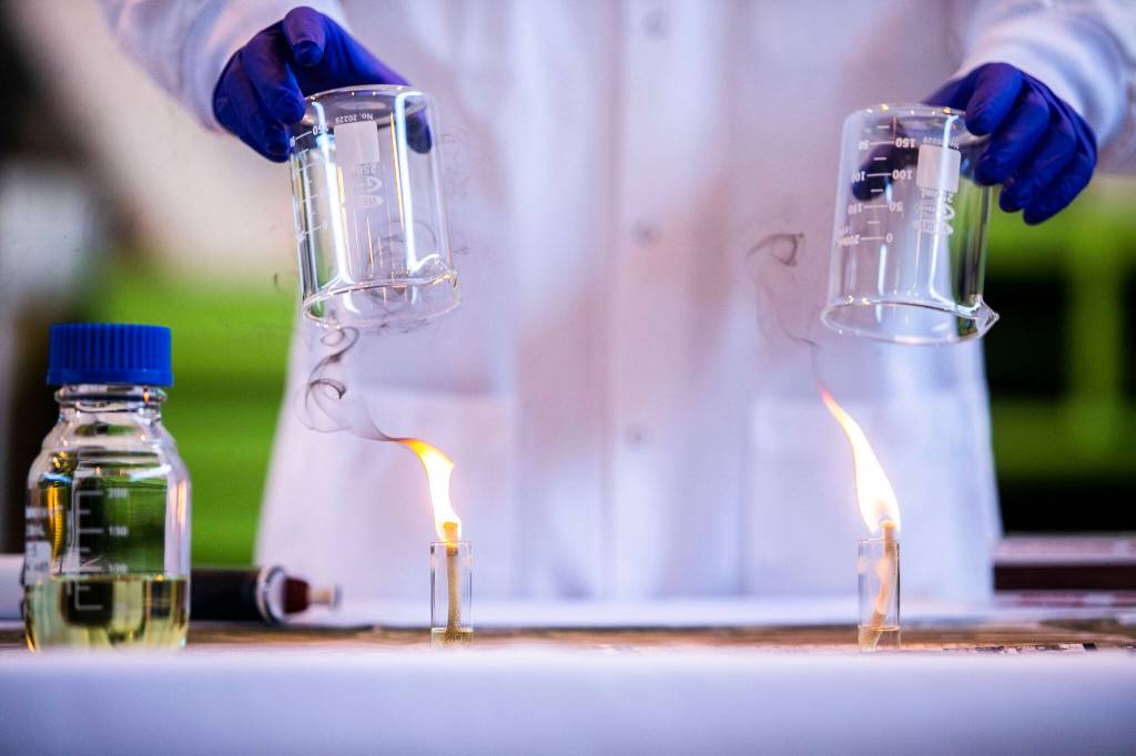 Heyne, who said he has tested sustainable jet fuel from 40 companies in his lab, said that, currently, the sustainable fuel must be blended with conventional jet fuel to power an airline.