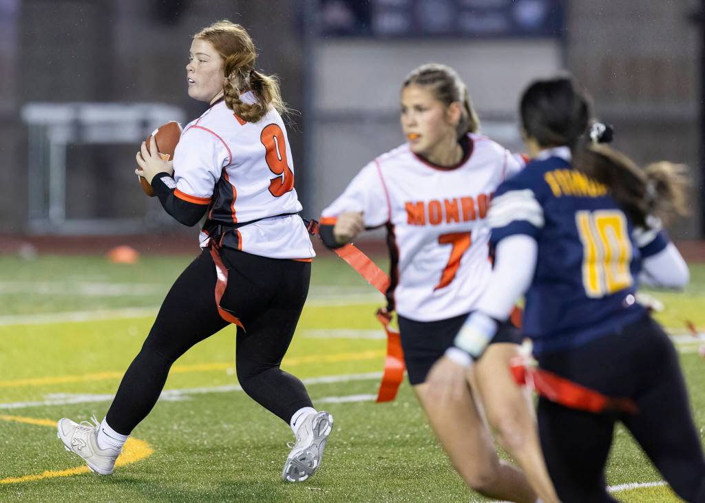 EVERETT — Monroe girls flag football had its back against the wall at Everett Memorial Stadium on Wednesday.