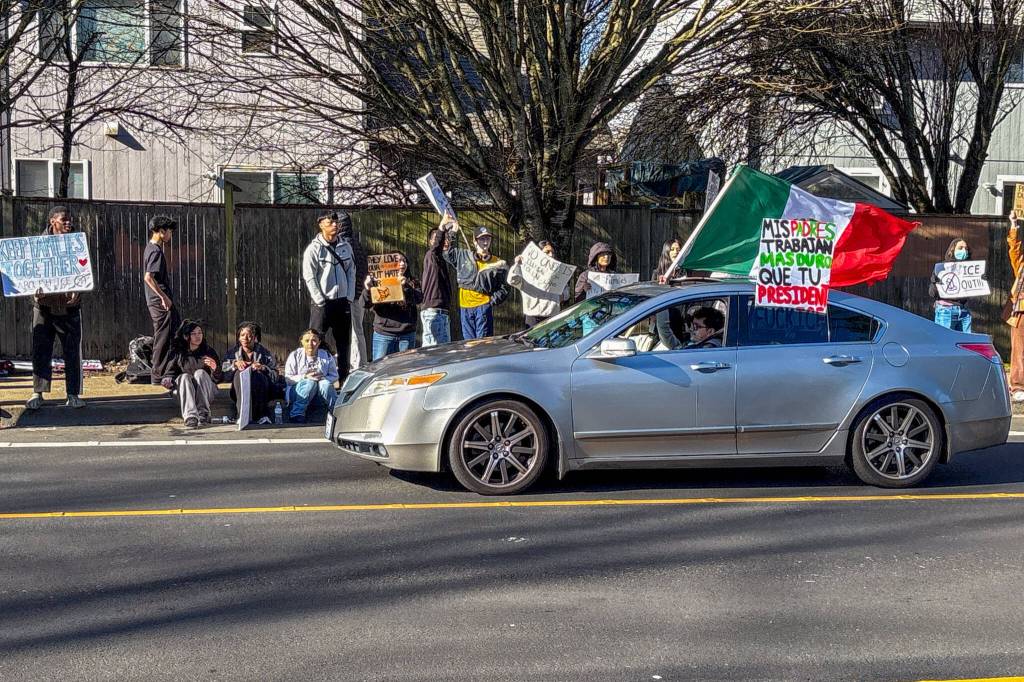 The Wednesday demonstration remained peaceful throughout, with few minor incidents. Drivers revved their engines and honked their horns as they drove by. Some held up their middle fingers. One individual yelled, “Let’s go ICE,” from the golf course.