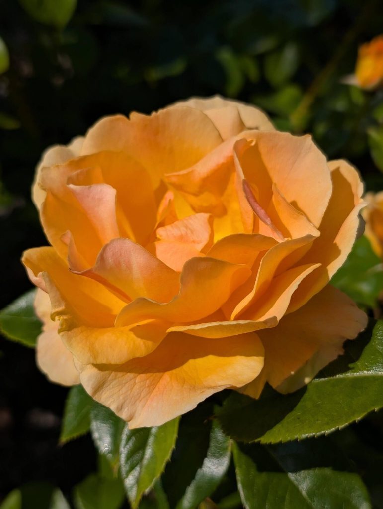 ‘Livin’ Easy’: This fabulous Rose glows with a rich apricot-orange color and light fragrance all summer long, offering glossy green disease resistant foliage and own root hardiness to boot. It has been given the prefect name as you will kick back and enjoy easy living watching this Rose thrive with minimal effort.