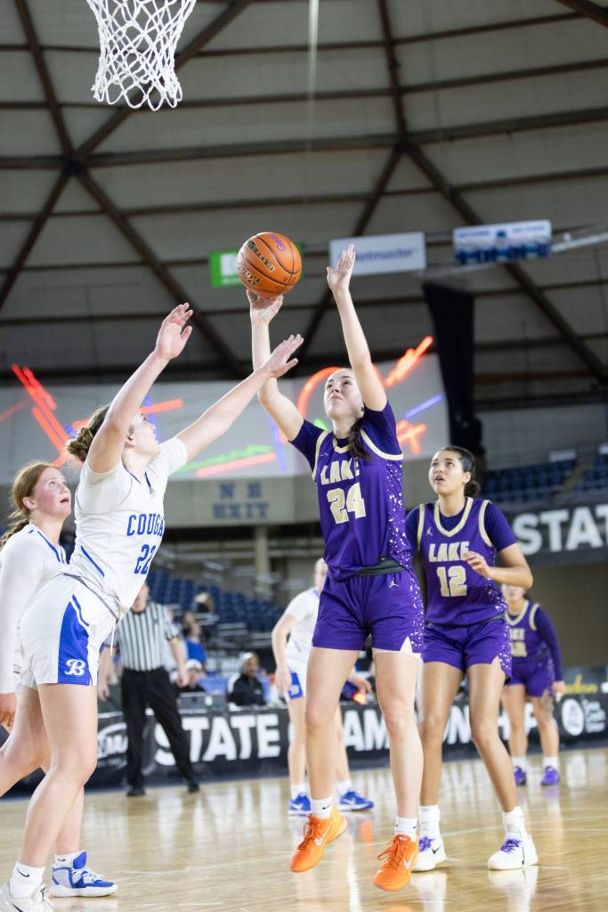 Cougars star senior Charlotte Lipkin lit up the net for Bothell in her final game, scoring 26 points on five 3-pointers as Dodge’s team adjusted to her shooting as the game went on. Kayleah Hawkins added eight points for Bothell, but a 26.5% shooting night forced by Lake Stevens was enough to sink the No. 7 seed. Lake Stevens shot 44.9% from the field.